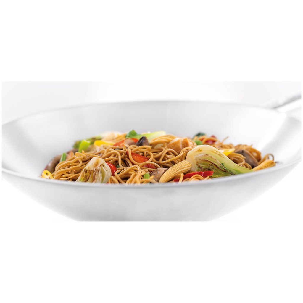 Univerzálna wok panvica pre profesionálne kuchyne je vhodná pre plynové aj indukčné variče. Skvele sa hodí na smaženie, dusenie aj fritovanie a vďaka kvalitnému spracovaniu spĺňa vysoké nároky na výkon aj výslednú kvalitu prípravy pokrmov.