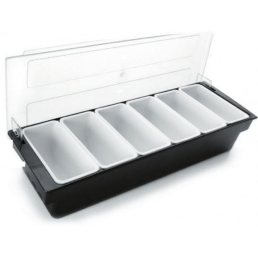 Zásobník na ingrediencie sa hodí barmanom na prípravu miešaných nápojov. Je ideálny pre všetky barové prísady ako čerešne, olivy, limetky alebo citrónové mesiačiky.Zásobník na ingrediencie