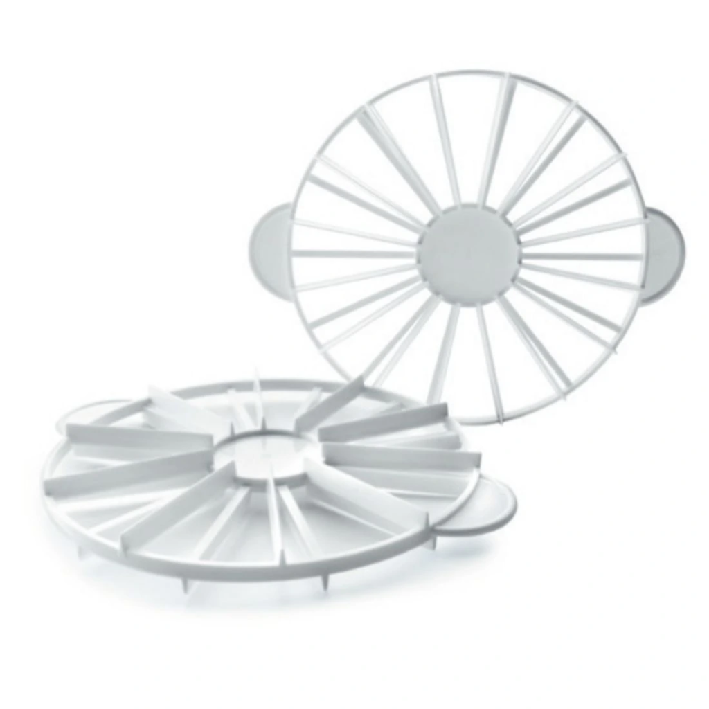 Značkovač na torty vám poslúži na elegantné a jednoduché označenie dielov na torte. Stačí ho priložiť a jemne otlačiť. Potom ho odložíte a na povrchu sa objavia značky, podľa ktorých potom tortu nakrájate. Navyše je v obojstrannom prevedení s ergonomickými rukoväťami a tortové diely nakrája na rovnomerné plátky.Značkovač na torty 14–16 dielikov